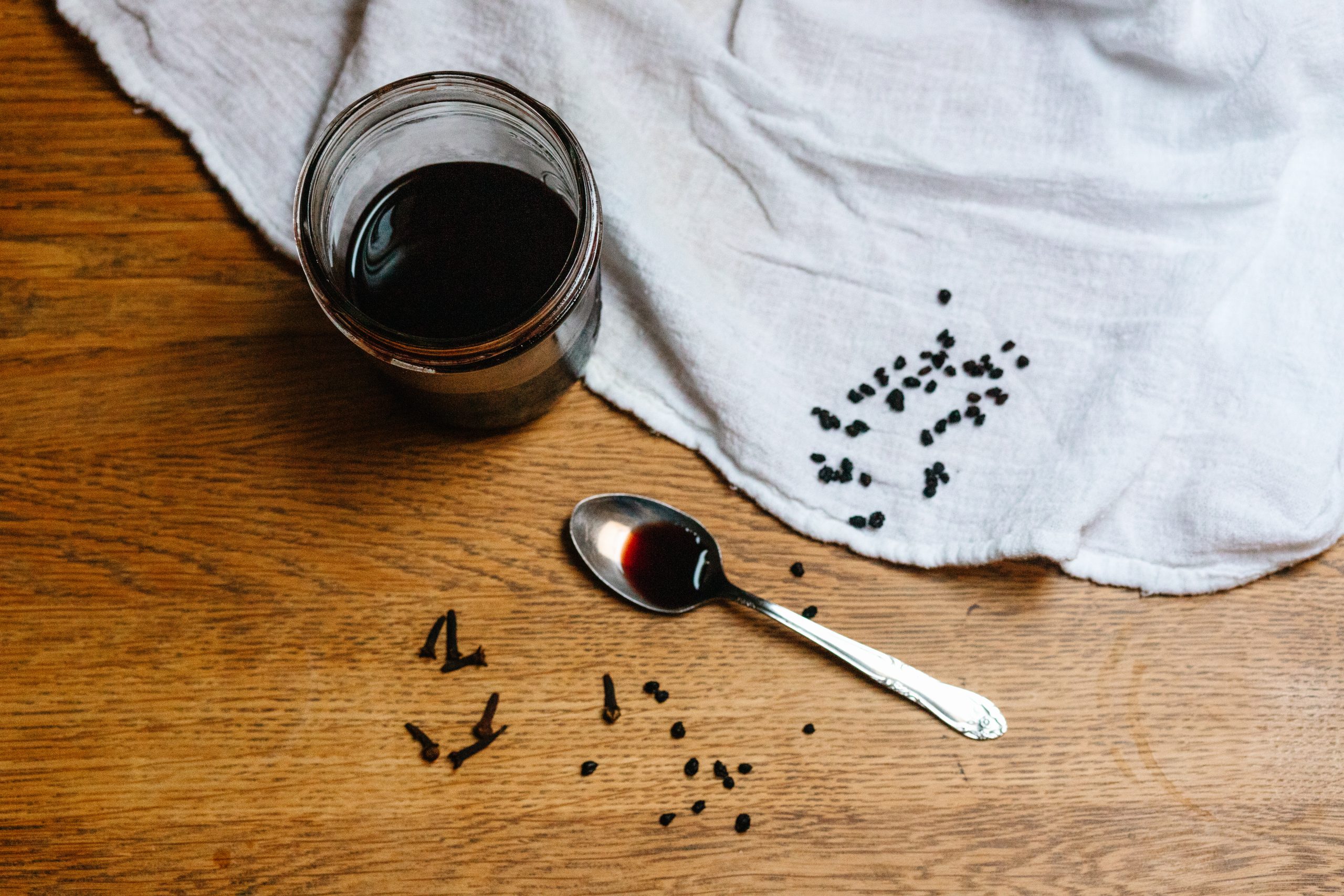 Syrup Kit ingredients: organic dried elderberries, organic Ceylon cinnamon, organic ginger, organic cloves, organic goji berries